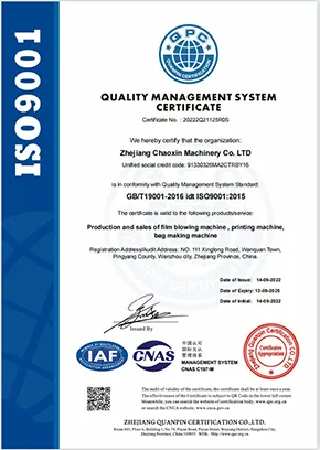 Zhejiang Chaoxin Machinery Technology Co., LTD is a professional manufacturer of blown film machine (biodegradable blown film machine, three-layer co-extrusion blown film machine, ABA blown film machine), bag making machine and printing machine.We are committed to establish a leading enterprise in producing biodegradable, compostable and plastic film blowing machine,bag making machine,printing machine etc.